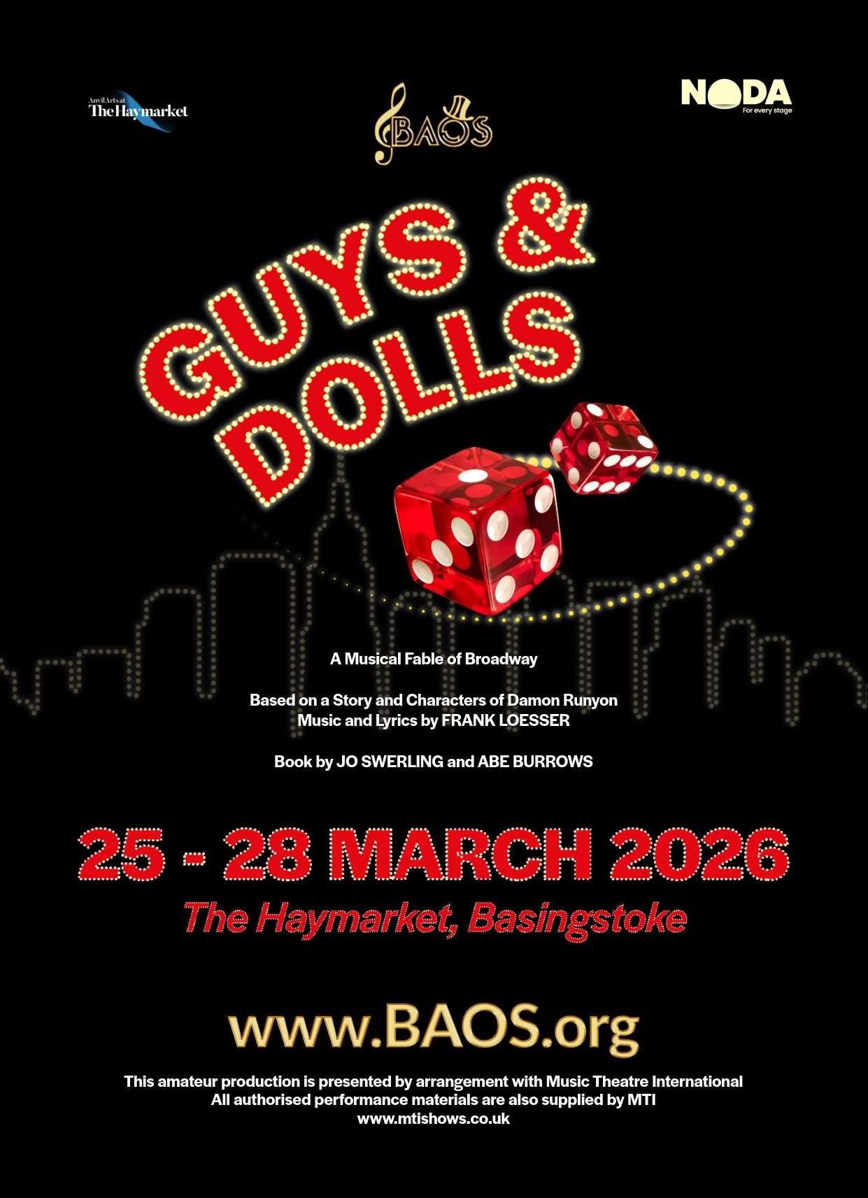 Get ready for BAOS’ spectacular production of Guys and Dolls at The Haymarket, Basingstoke. Featuring show-stopping numbers like Luck Be a Lady and Sit Down, You’re Rockin’ the Boat, this vibrant musical promises an unforgettable show of charm, romance, and excitement.